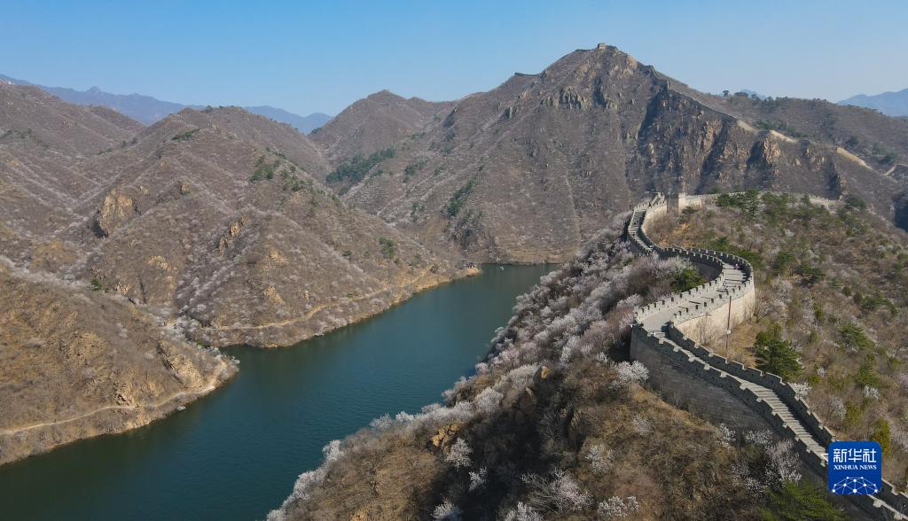 這是3月29日拍攝的黃花城水長城春色(無人機(jī)照片)。