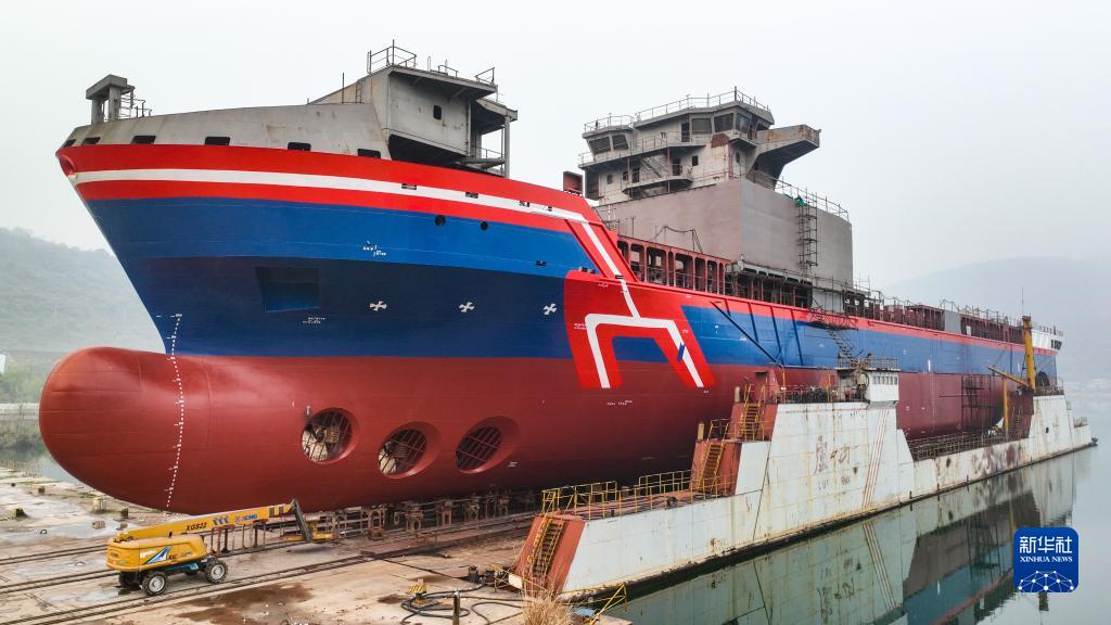 3月29日,萬噸級遠洋通信海纜鋪設船“龍吟9號”在江西九江市瑞昌市下水。