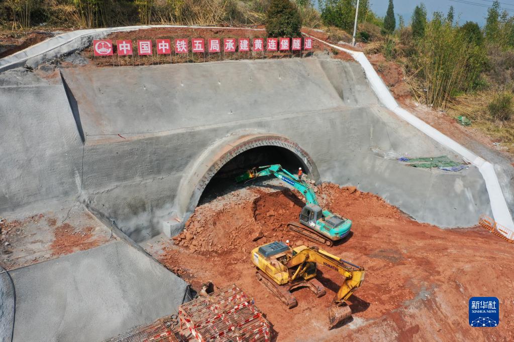 這是3月30日拍攝的位于重慶市大足區(qū)國(guó)梁鎮(zhèn)的成渝中線高鐵首座隧道——黃連堡隧道施工現(xiàn)場(chǎng)(無(wú)人機(jī)照片)。