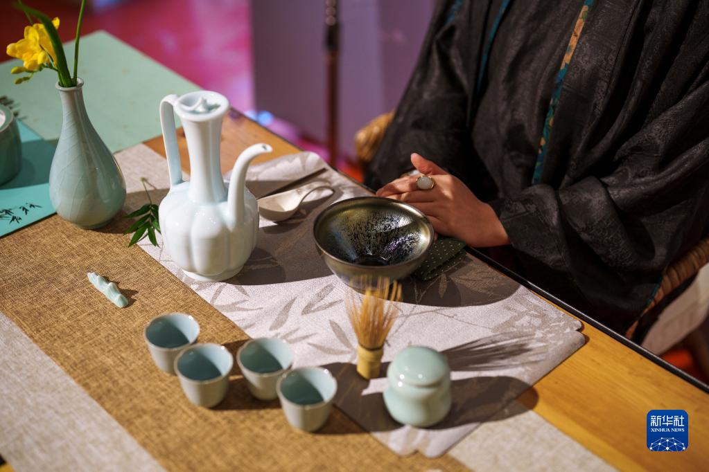 3月29日,在西班牙巴塞羅那歐洲現(xiàn)代藝術博物館,工作人員展示宋代茶藝。