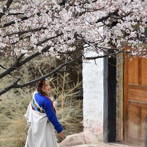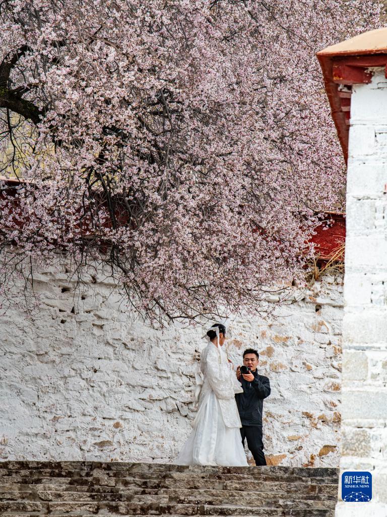 近日,位于拉薩北部山坳里的古剎帕邦喀周圍桃花盛開,吸引眾多游客前來觀光拍照。