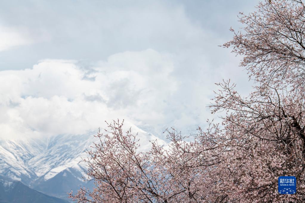 近日,位于拉薩北部山坳里的古剎帕邦喀周圍桃花盛開,吸引眾多游客前來觀光拍照。