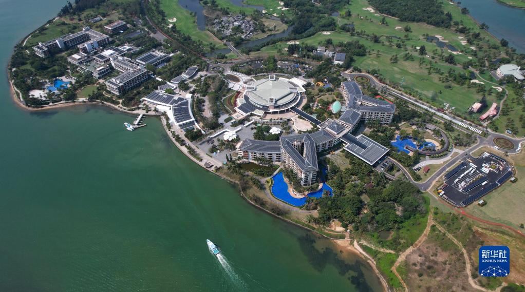 在博鰲零碳示范區(qū),大部分建筑頂上都鋪設(shè)了光伏板(3月15日攝,無人機(jī)照片)。