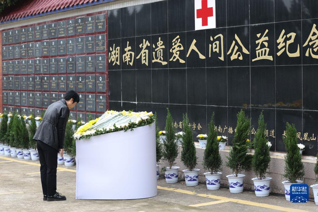 當日,以“生命·遇見”為主題的2023全國人體器官捐獻緬懷紀念活動在湖南省長沙市鳳凰山遺愛人間公益紀念陵園舉行,人們向安息在這里的576名遺體和人體器官捐獻者敬獻鮮花,同時也向全國的遺體和人體器官捐獻者致敬。
