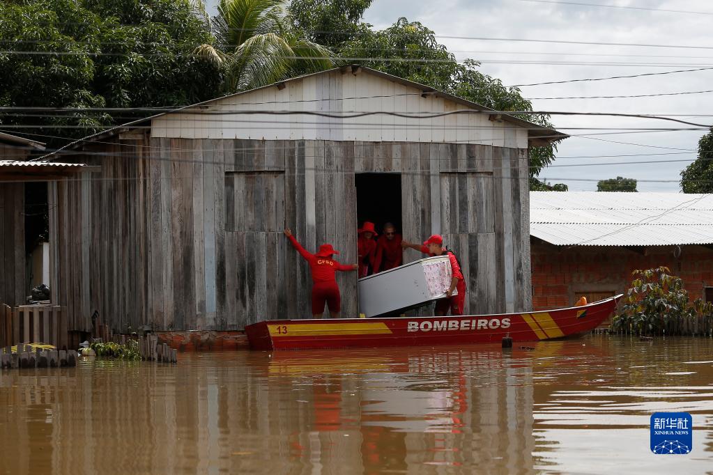 3月30日,在巴西阿克里州里奧布朗庫,救援人員幫助居民搬運物品。