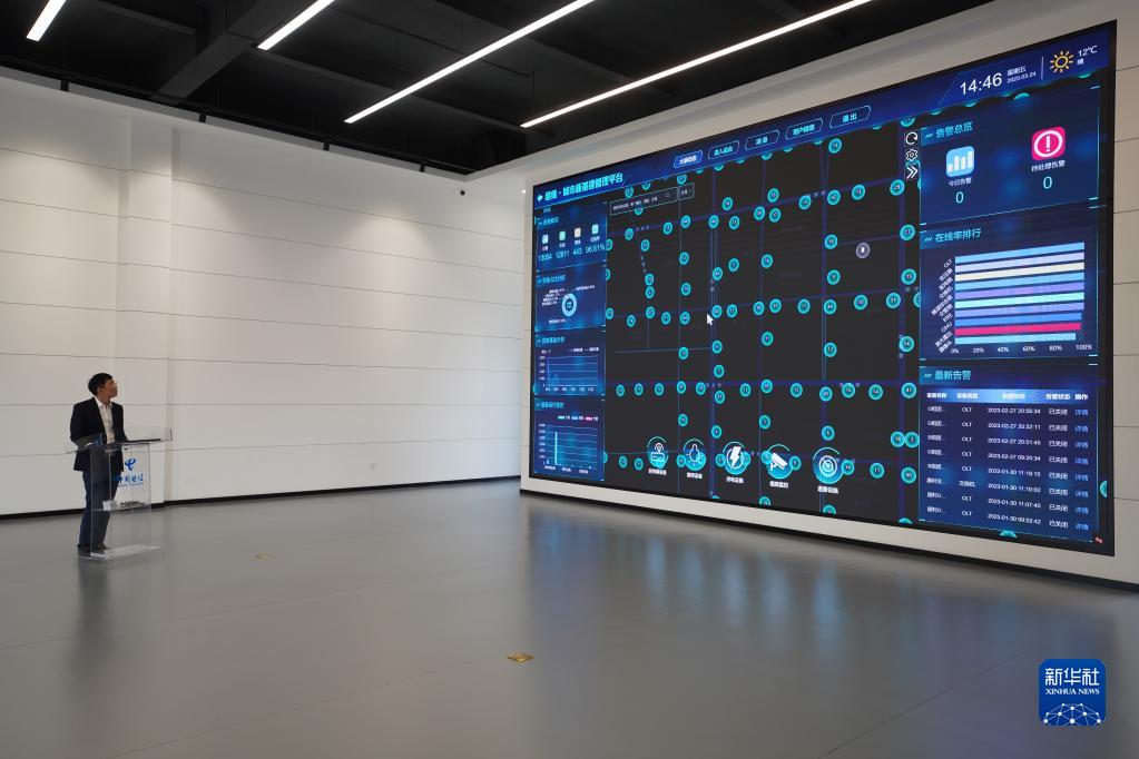 河北雄安新區中國電信智慧城市產業園的工作人員展示數字道路運營系統(3月24日攝)。