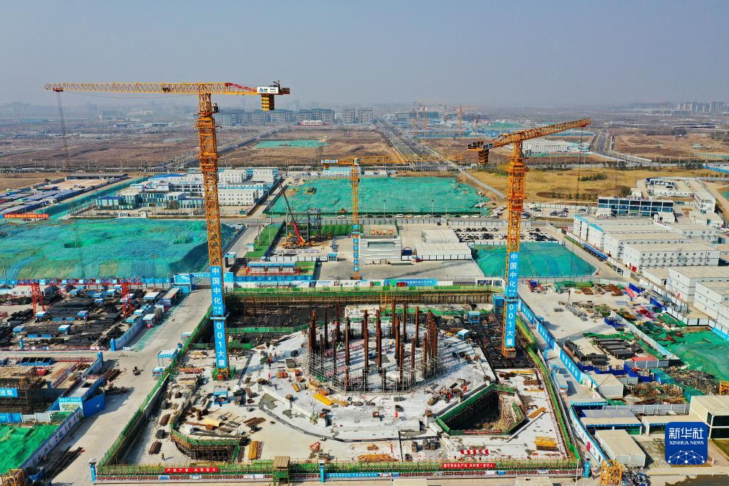 這是位于雄安新區啟動區的中國中化雄安總部001大廈項目建設現場(3月30日攝,無人機照片)。