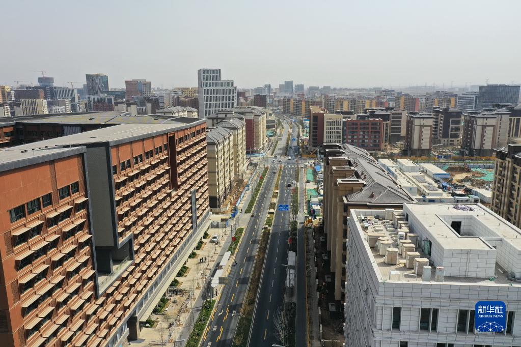 這是雄安新區(qū)容東片區(qū)的街道(3月24日攝,無人機(jī)照片)。