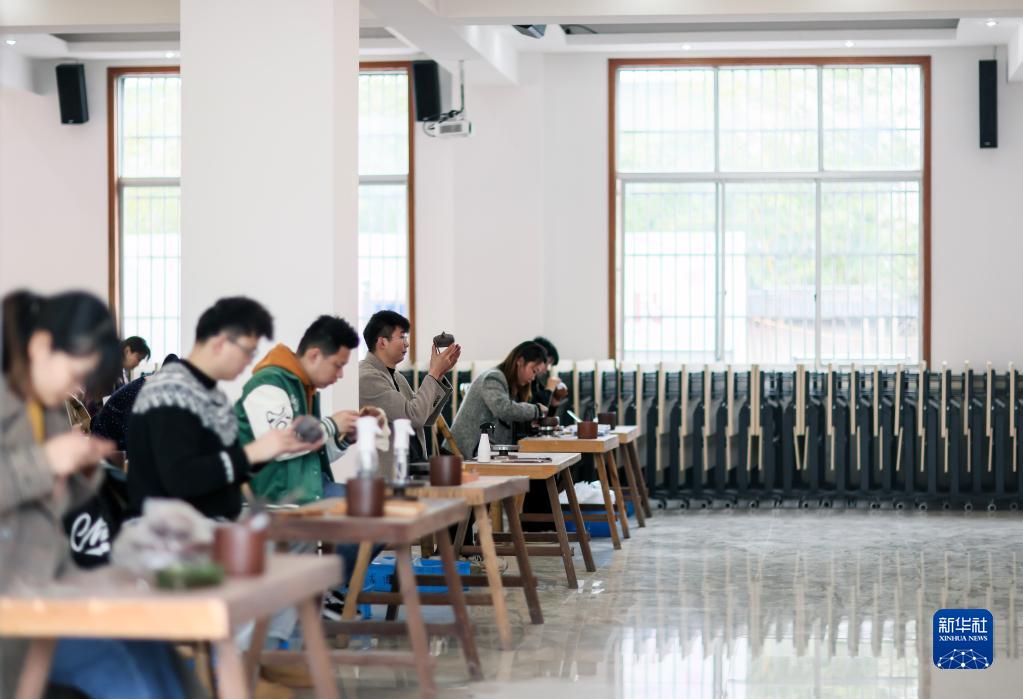 3月30日,學員們在江蘇宜興西望紫砂陶瓷專業合作社學習制作紫砂壺。