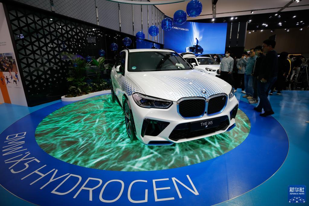 3月31日,在韓國京畿道高陽市韓國國際展覽中心,人們在“2023首爾移動出行展”上參觀氫燃料電池車。