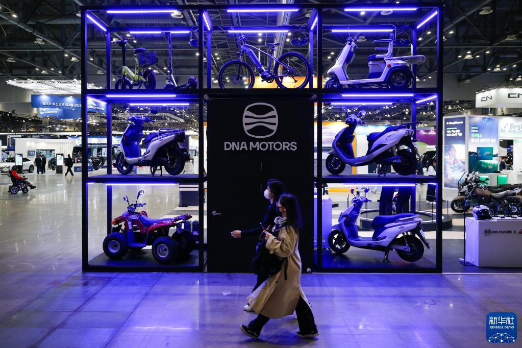 3月31日,在韓國京畿道高陽市韓國國際展覽中心,人們在“2023首爾移動出行展”上參觀。
