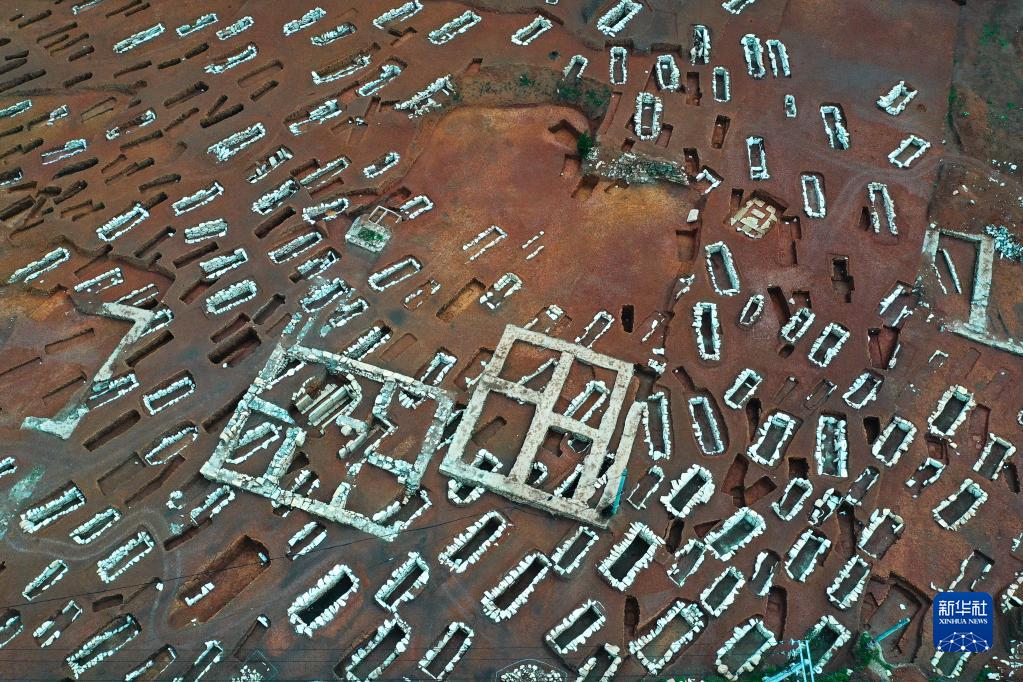 3月30日拍攝的貴州貴安新區大松山墓群挖掘現場(無人機照片)。