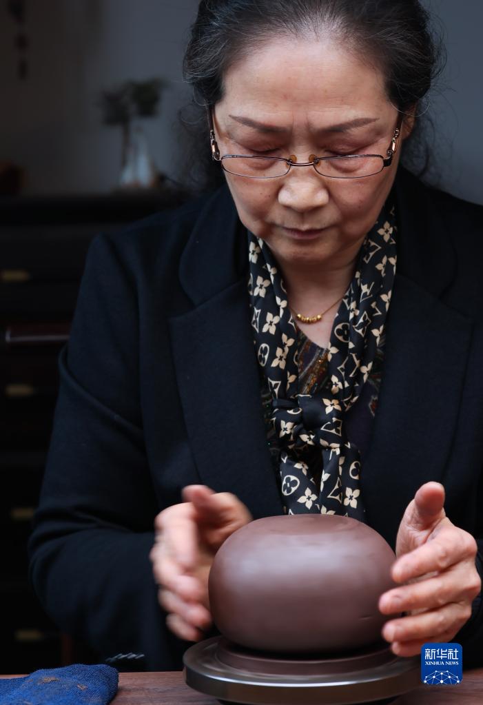 江蘇省無錫市宜興市素有“中國陶都”美譽,擁有一批優秀的紫砂藝人,83歲的中國陶瓷藝術大師曹婉芬是其中的杰出代表。她出生于宜興市蜀山古南街陶業世家,從小受紫砂藝術熏陶。1955年,曹婉芬拜師紫砂名家朱可心,并得到裴石民、王寅春、顧景舟等大師傳授技藝。近70年來,她潛心創作,食古而吐秀,不僅擅長紫砂花器,熟練掌握光器、筋紋器,還能制作一整套做壺工具。曹婉芬的紫砂作品在國際及全國陶瓷評比中屢屢獲獎。在她的影響和傳授下,后代們也從事紫砂行業并取得成就。