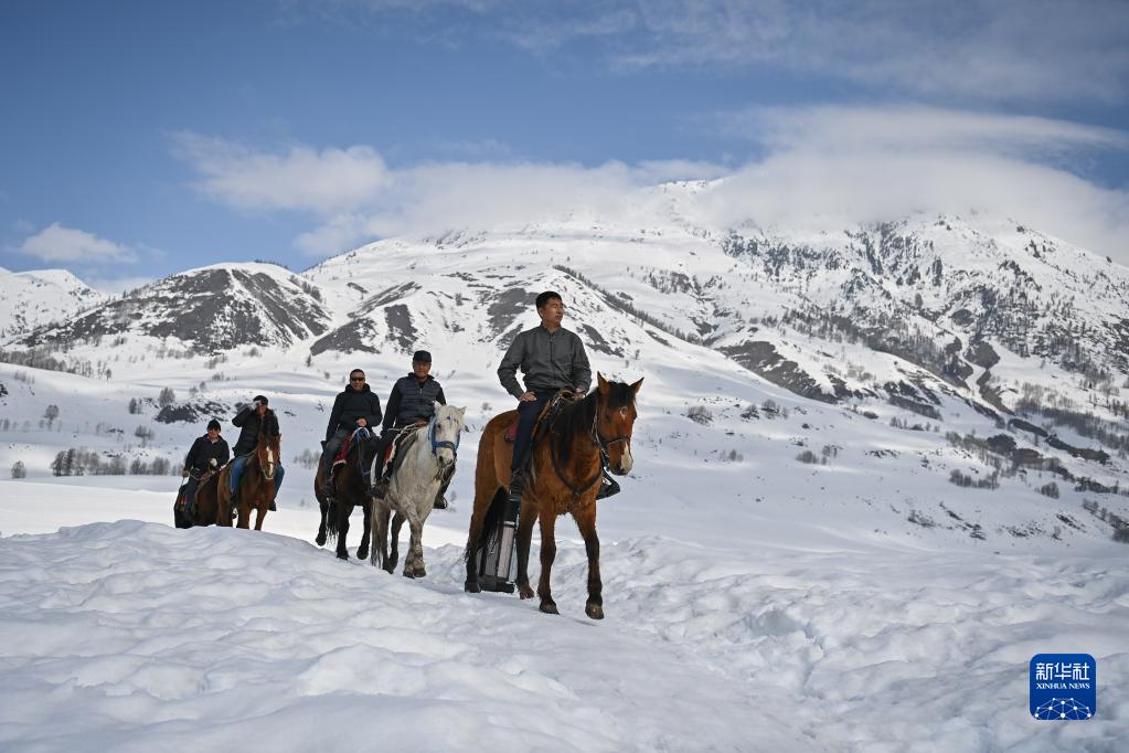 3月30日,蘇卡(前)和馬隊隊員一起,巡視上山的線路。