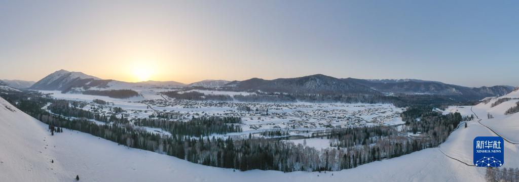 3月30日早晨拍攝的禾木村(無人機(jī)全景照片)。