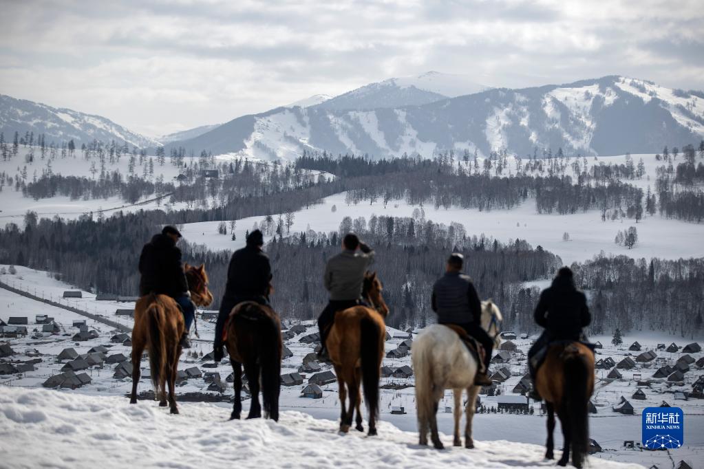 3月30日,蘇卡(中)和馬隊成員在哈登平臺俯瞰禾木村。