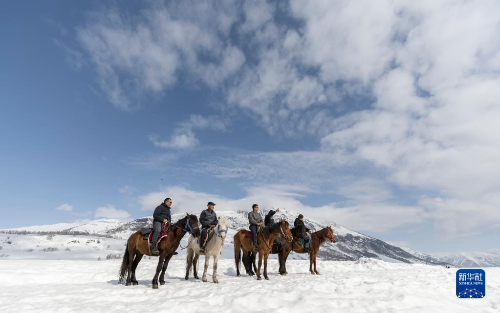3月30日,蘇卡(中)和馬隊成員在哈登平臺俯瞰禾木村。