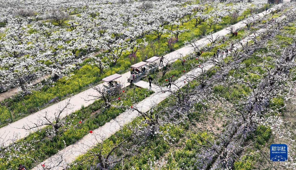 連日來,河北省石家莊晉州市17萬畝梨花競相綻放,果農搶抓農時疏花授粉,游客觀景賞花,梨園內一派熱鬧景象。近年來,河北省石家莊晉州市以花為媒,大力發展生態農業和鄉村旅游,因地制宜打造多個農旅融合綜合體,為游客提供觀光、休閑、娛樂等多種服務,有效助力農戶增收。