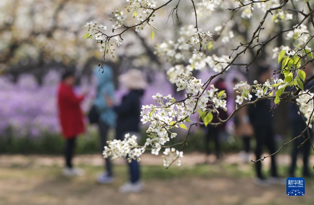 3月31日,游客在江蘇省宿遷市三臺山森林公園游園賞花。