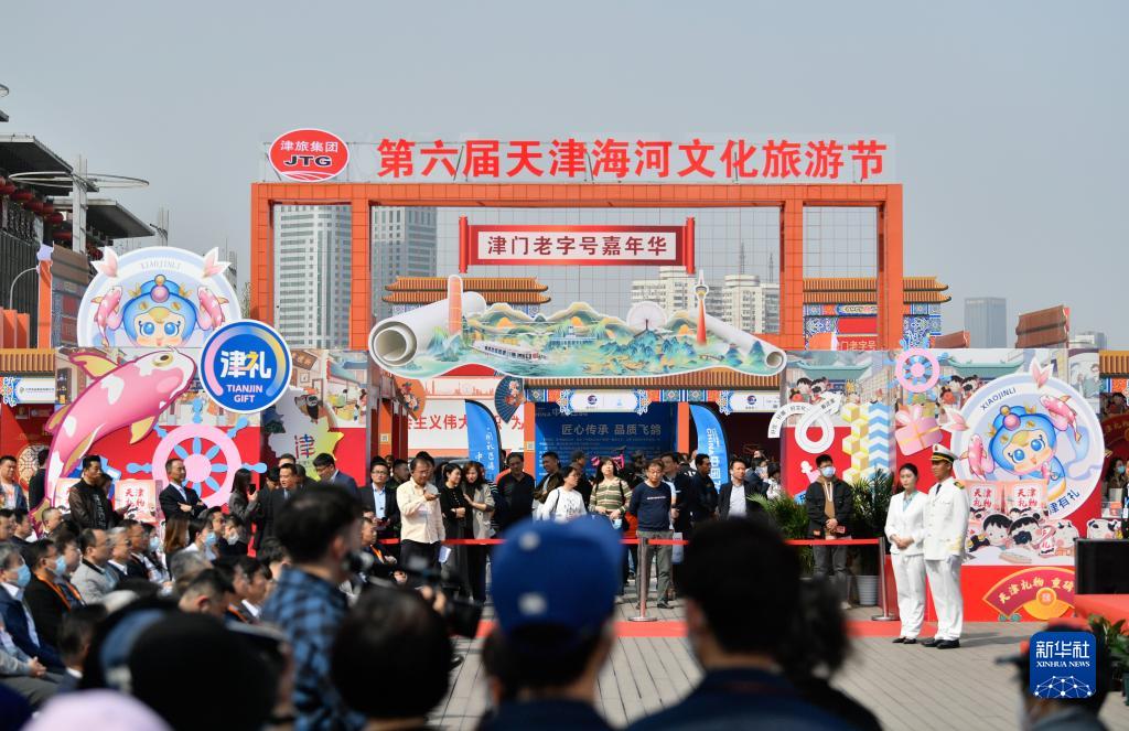 當日,第六屆天津海河文化旅游節暨津門老字號嘉年華活動在古文化街親水平臺舉行開幕儀式。本屆天津海河文化旅游節以“I游天津 國潮精品”為主題,包含游船巡游、津門老字號嘉年華、海河演出季等8個系列主題活動。