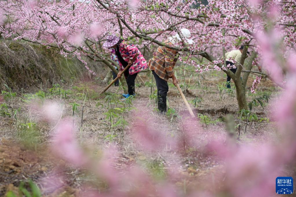 春暖花開(kāi)時(shí)節(jié),農(nóng)民伴著花香忙農(nóng)事,一派生機(jī)盎然的景象。