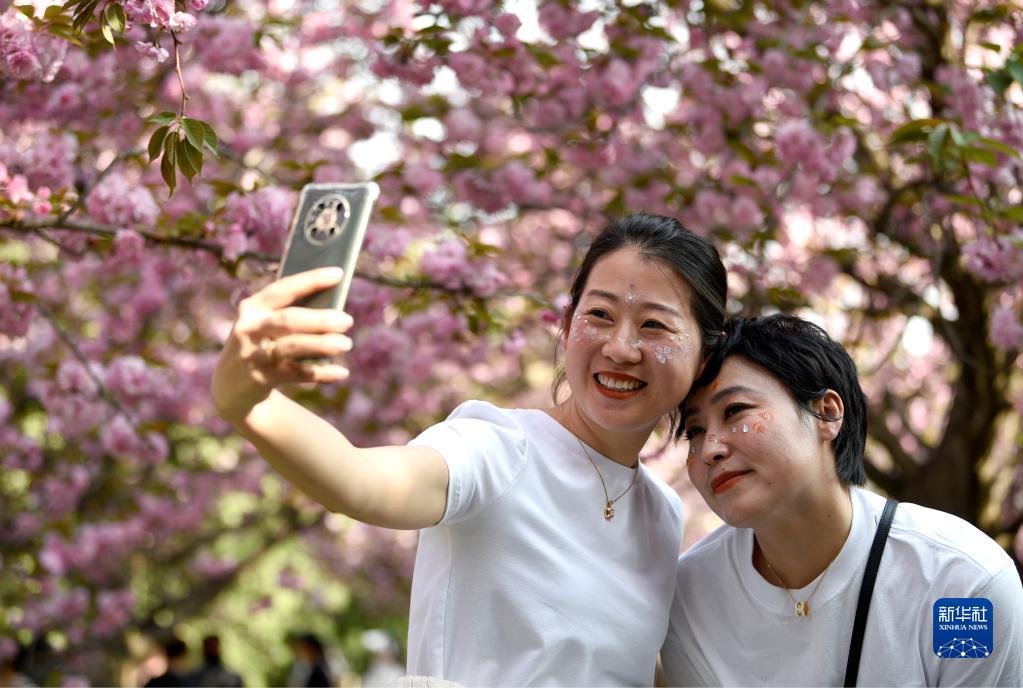 近日,陜西省西安市青龍寺遺址景區內的櫻花大面積開放,如云似霞的花海與仿唐建筑群相互映襯,獨特的春日古典之美吸引大量游客賞花游覽。