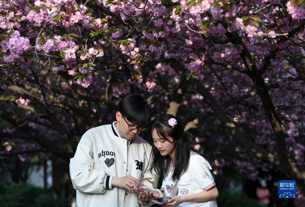 近日,陜西省西安市青龍寺遺址景區內的櫻花大面積開放,如云似霞的花海與仿唐建筑群相互映襯,獨特的春日古典之美吸引大量游客賞花游覽。