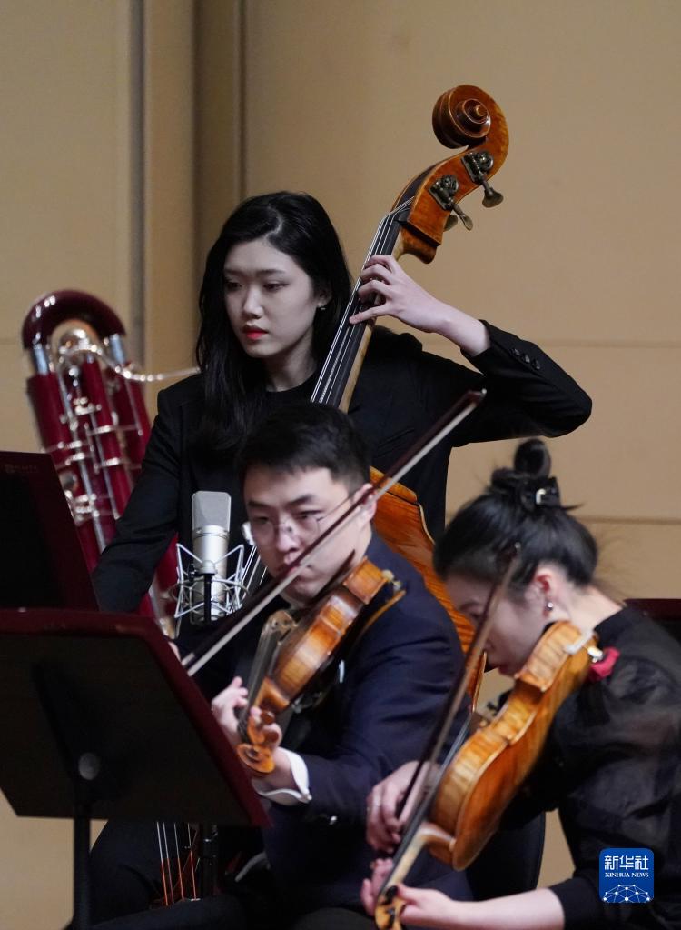 3月31日,中央音樂學院交響樂團的演員在演奏。