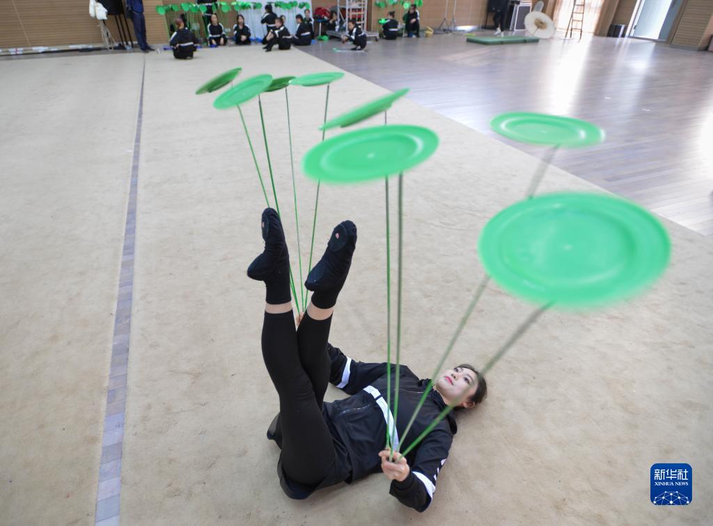 3月31日,演員在位于江蘇省鹽城市建湖縣的江蘇省雜技團訓練。