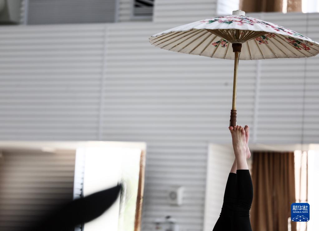 3月31日,演員在位于江蘇省鹽城市建湖縣的江蘇省雜技團(tuán)訓(xùn)練。