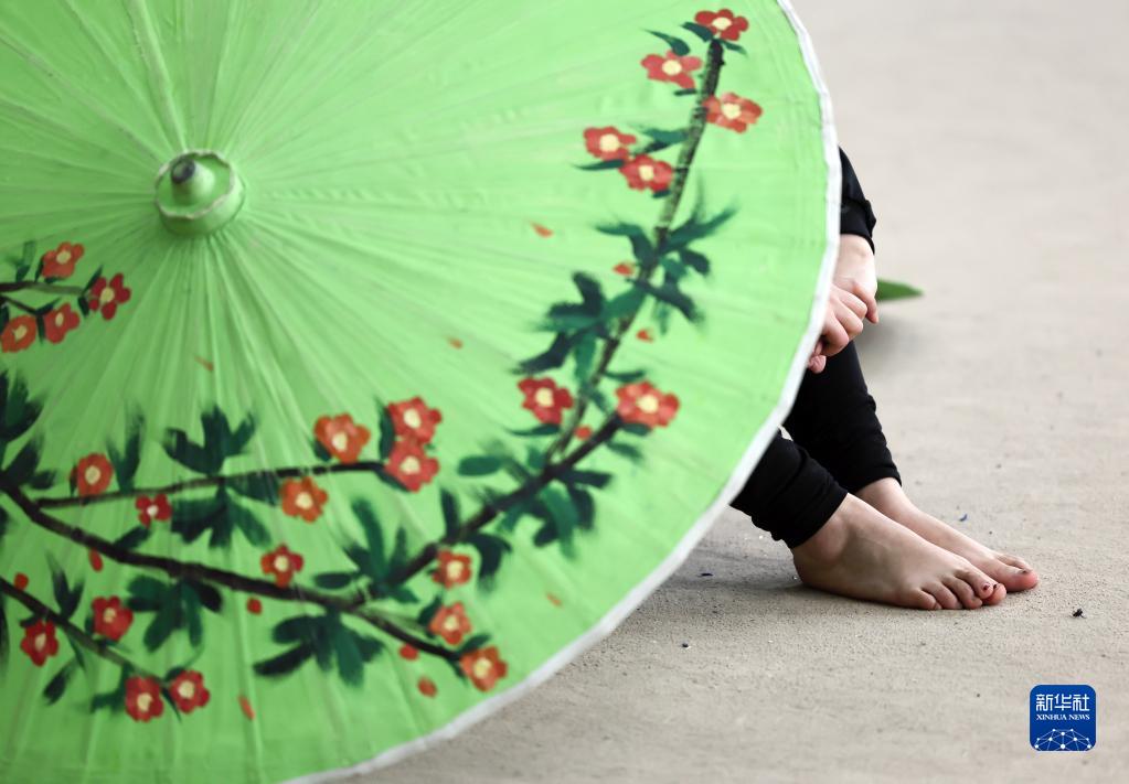 3月31日,演員在位于江蘇省鹽城市建湖縣的江蘇省雜技團(tuán)訓(xùn)練間歇休息。