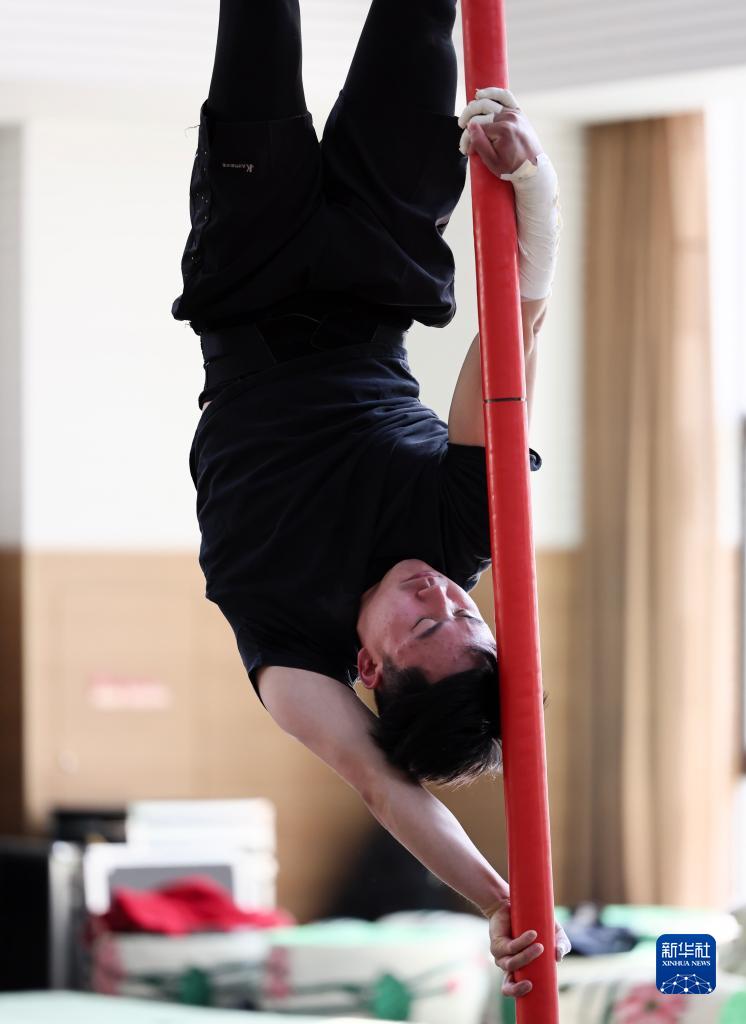 3月31日,演員在位于江蘇省鹽城市建湖縣的江蘇省雜技團(tuán)訓(xùn)練。