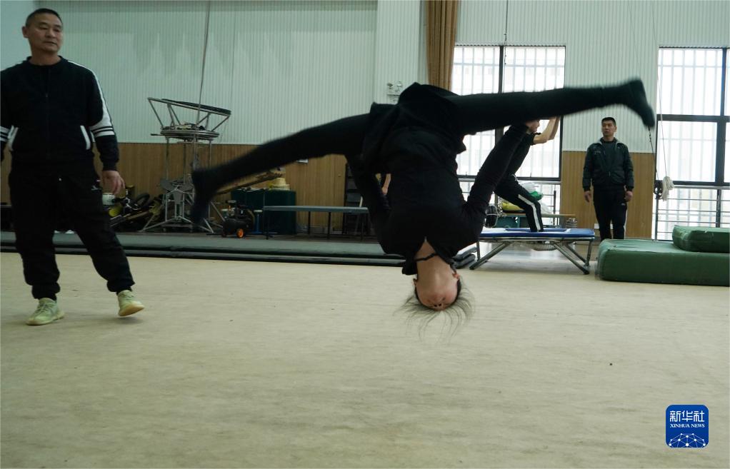 3月31日,演員在位于江蘇省鹽城市建湖縣的江蘇省雜技團訓練。