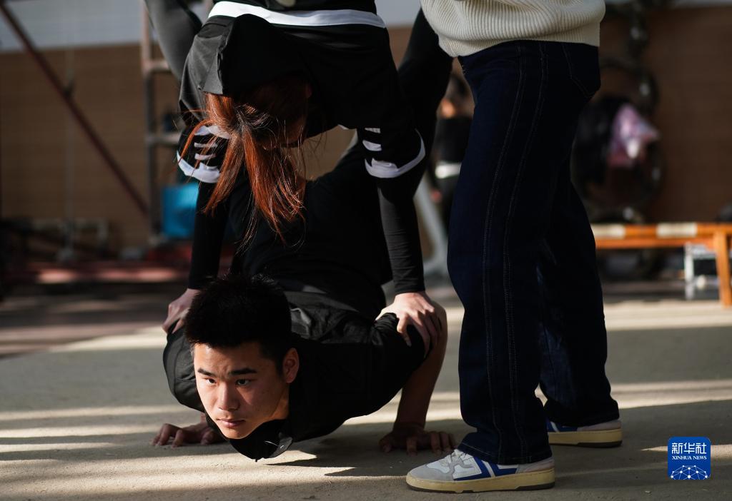 3月31日,演員在位于江蘇省鹽城市建湖縣的江蘇省雜技團(tuán)訓(xùn)練。