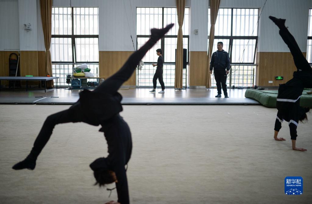 3月31日,演員們在位于江蘇省鹽城市建湖縣的江蘇省雜技團訓練。