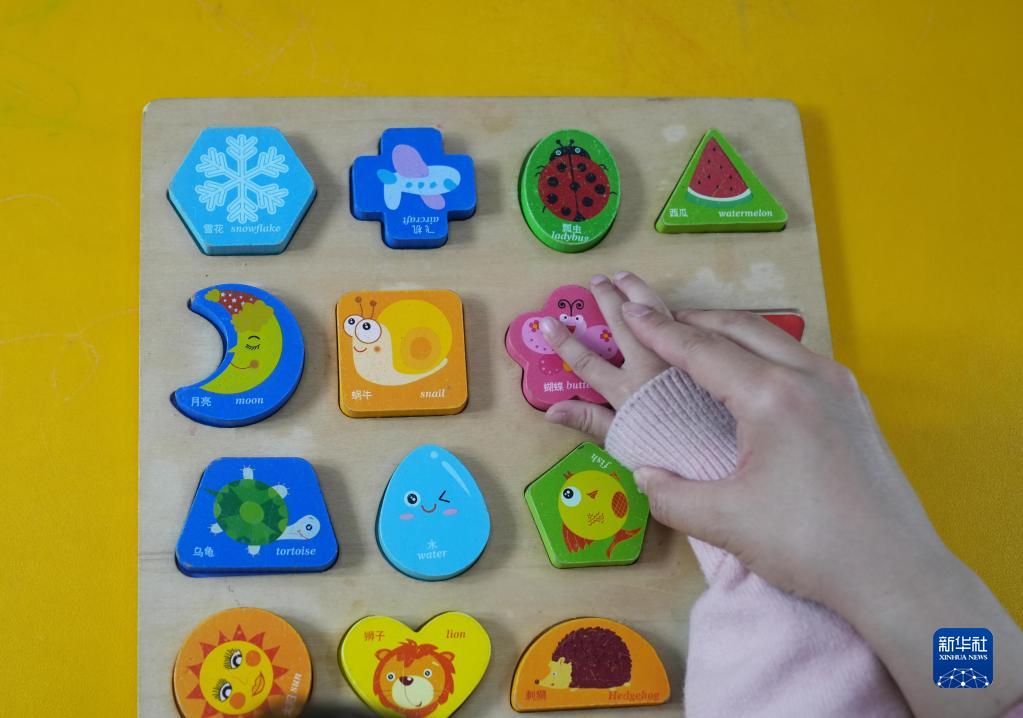 3月31日,在重慶市北碚區(qū)奔月鐵路幼兒園康教中心,特教老師幫助孤獨癥兒童進行精細動作訓練。