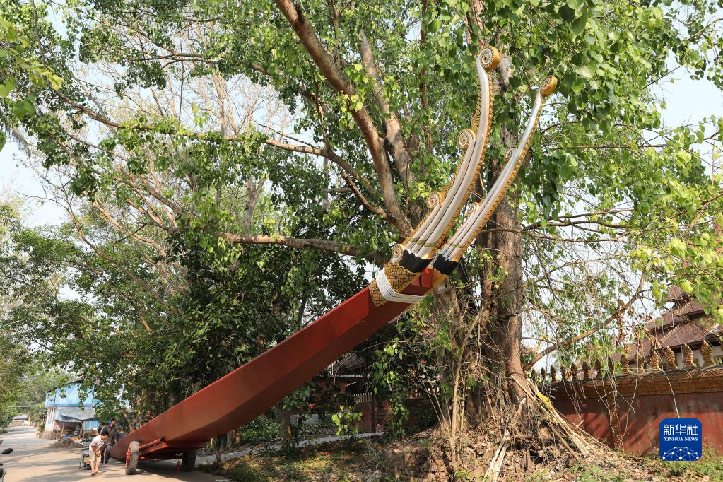 連日來,云南省西雙版納傣族自治州景洪市各村寨的傣族群眾忙著為龍舟扎龍頭、送龍舟下水,為即將到來的潑水節龍舟賽做準備。龍舟賽是當地傣族群眾在傣歷新年期間舉辦的集競技、觀賞于一體的慶祝活動。