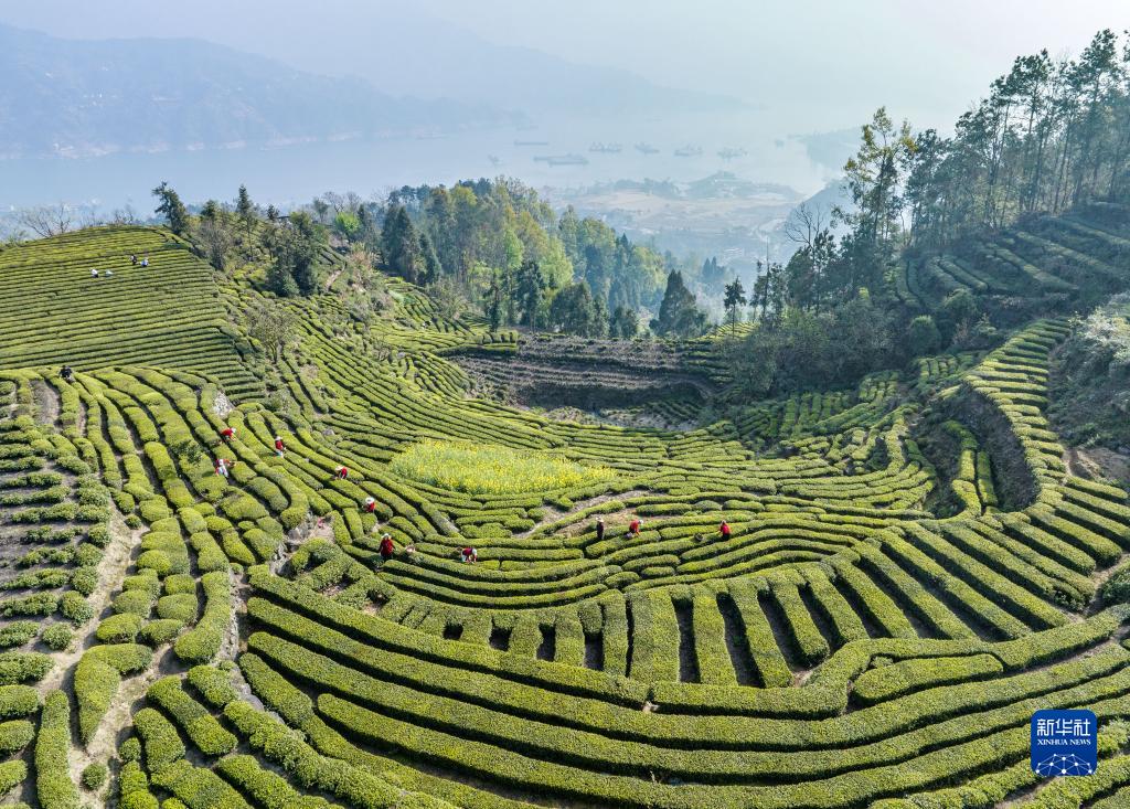 清明臨近,三峽庫(kù)區(qū)湖北省秭歸縣“明前茶”進(jìn)入采摘高峰期。當(dāng)?shù)夭柁r(nóng)在茶園內(nèi)搶采茶葉嫩芽,忙碌的身影與秀美的茶園構(gòu)成一幅幅美麗的圖畫。