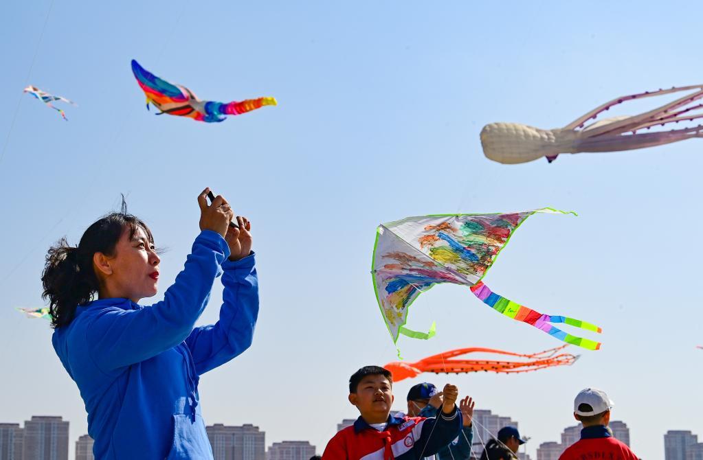 當(dāng)日,內(nèi)蒙古鄂爾多斯市康巴什區(qū)在亞洲雕塑藝術(shù)主題公園舉辦“紙鳶飛舞頌春色”系列活動(dòng),風(fēng)箏愛好者和文學(xué)書法愛好者在活動(dòng)中彩繪風(fēng)箏,詠詩賦詞,放飛紙鳶,享受春光。