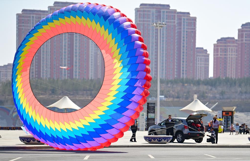 當日,內蒙古鄂爾多斯市康巴什區在亞洲雕塑藝術主題公園舉辦“紙鳶飛舞頌春色”系列活動,風箏愛好者和文學書法愛好者在活動中彩繪風箏,詠詩賦詞,放飛紙鳶,享受春光。