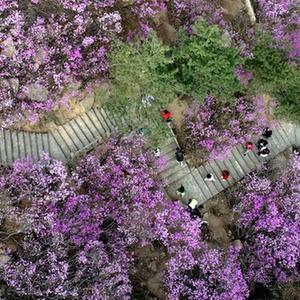 近日,山東青島西海岸新區大珠山萬畝野生杜鵑進入盛花期,漫山遍野的杜鵑花吸引游客前往賞花游玩,享受春光。