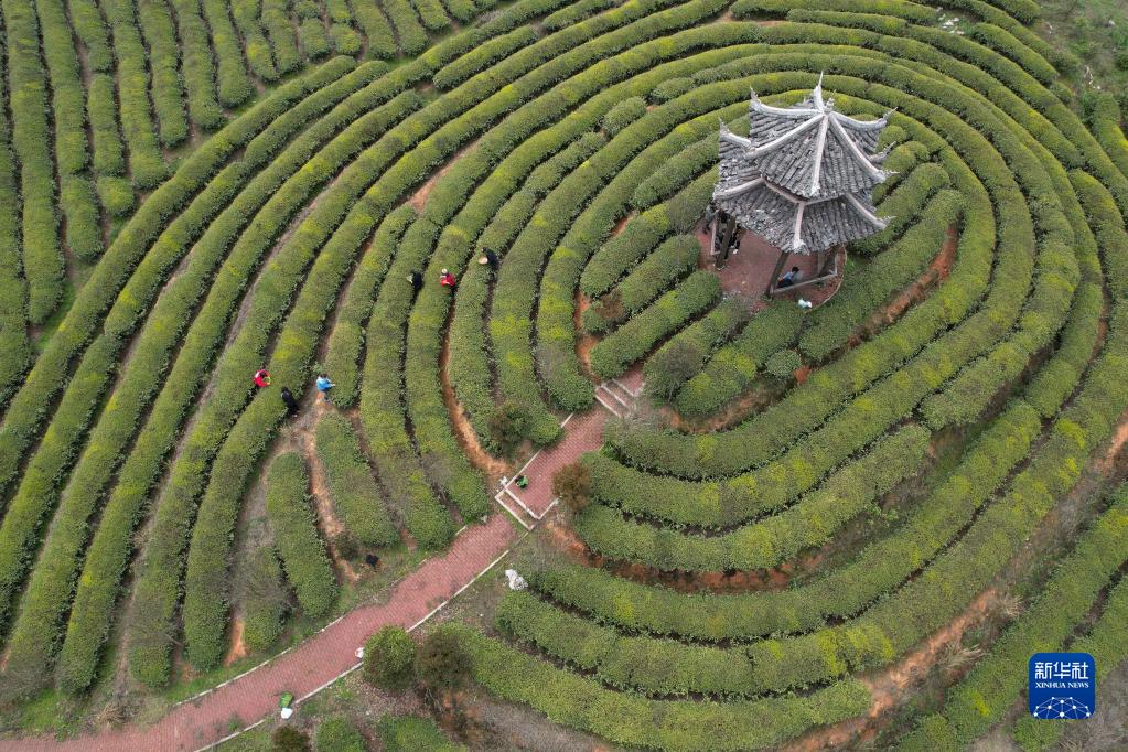 這是4月1日拍攝的岑鞏縣天馬鎮(zhèn)一茶葉種植基地(無人機照片)。