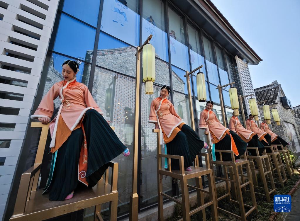 4月1日,演員在位于江蘇省鹽城市建湖縣的淮劇小鎮表演淮劇。