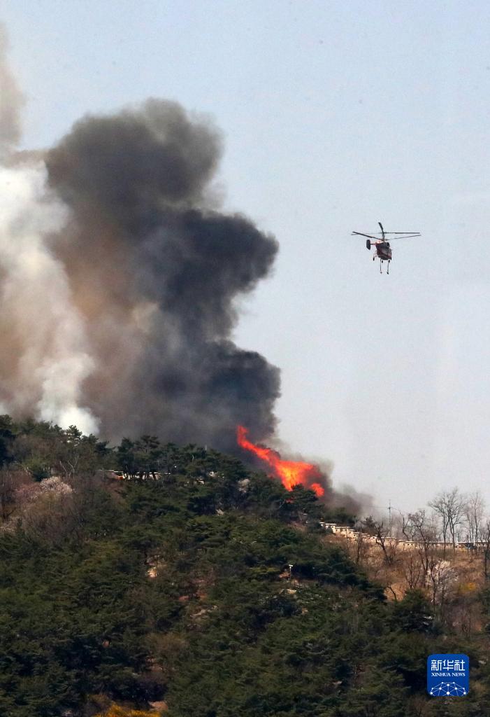 4月2日,直升機在韓國首爾市仁王山上空執行滅火作業。