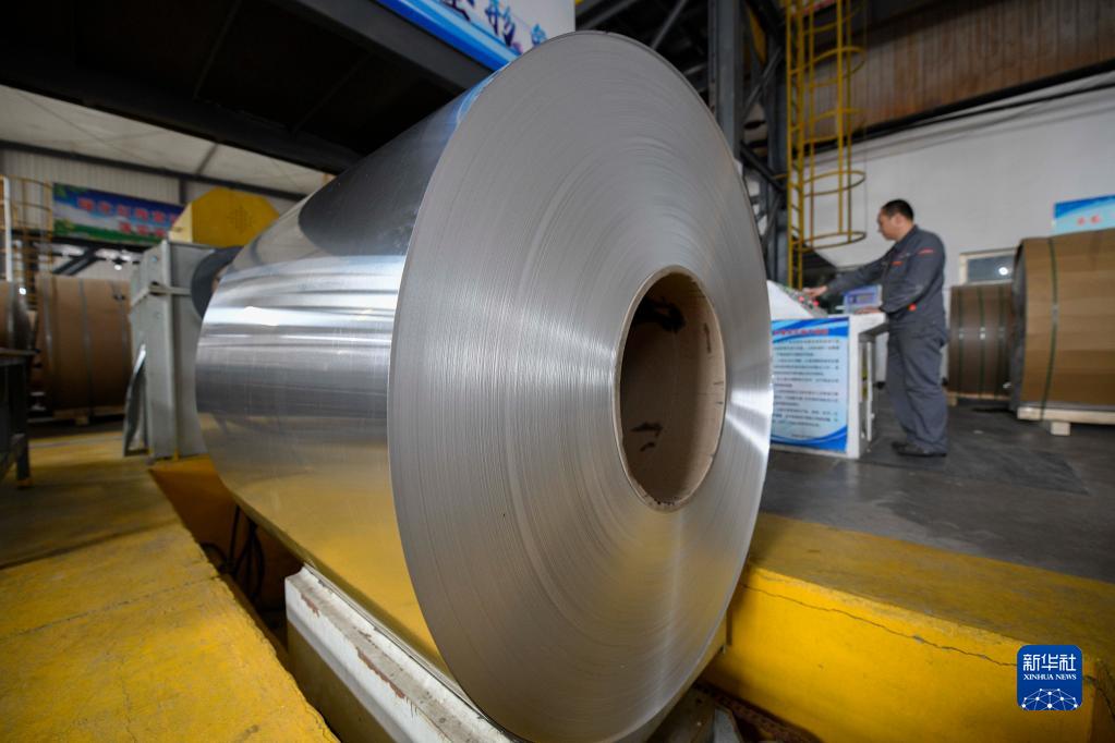4月2日,在承德縣高新技術產業開發區一家印刷板材生產企業,工人在生產線上忙碌。