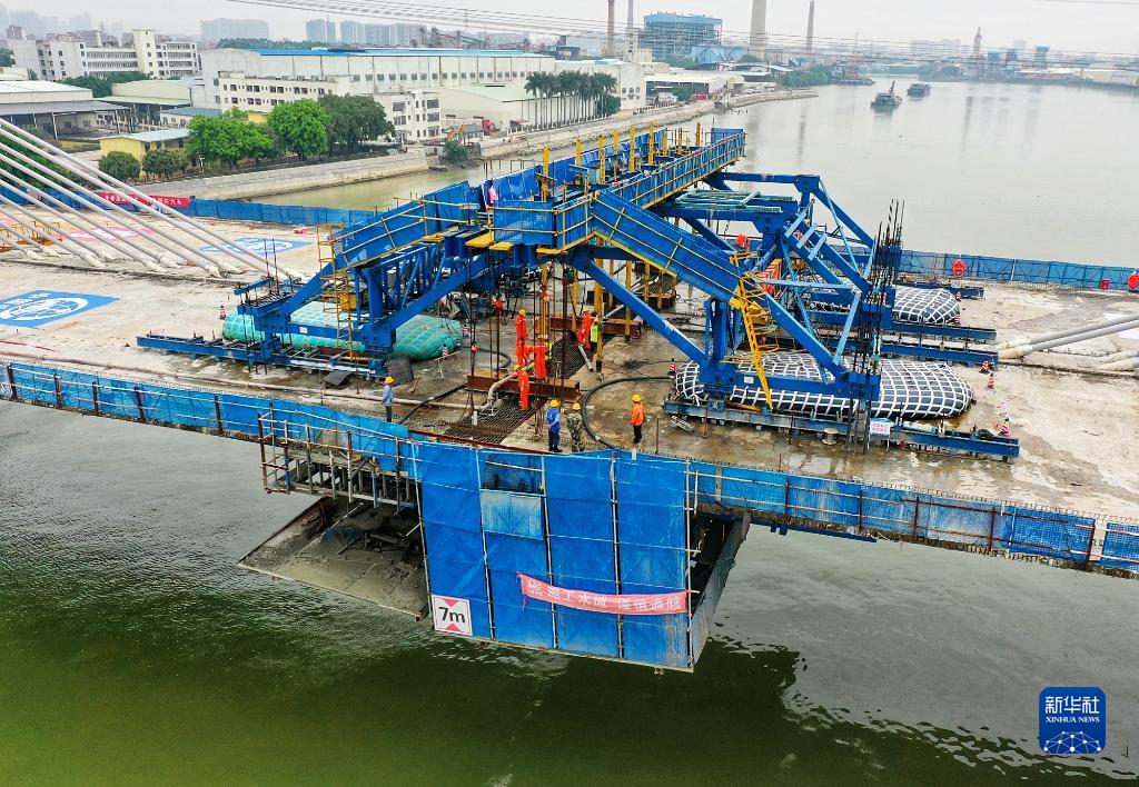 東莞槎馬特大橋主跨合龍段施工現場(4月2日攝,無人機照片)。