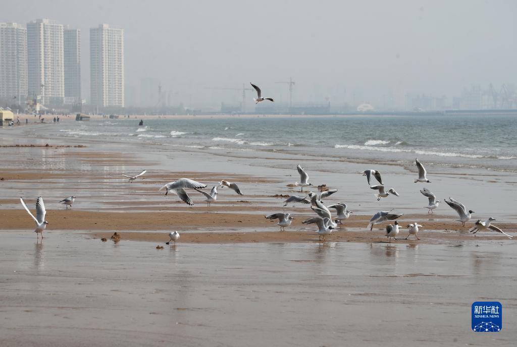 4月2日在秦皇島市海港區金夢海灣拍攝的海鷗。