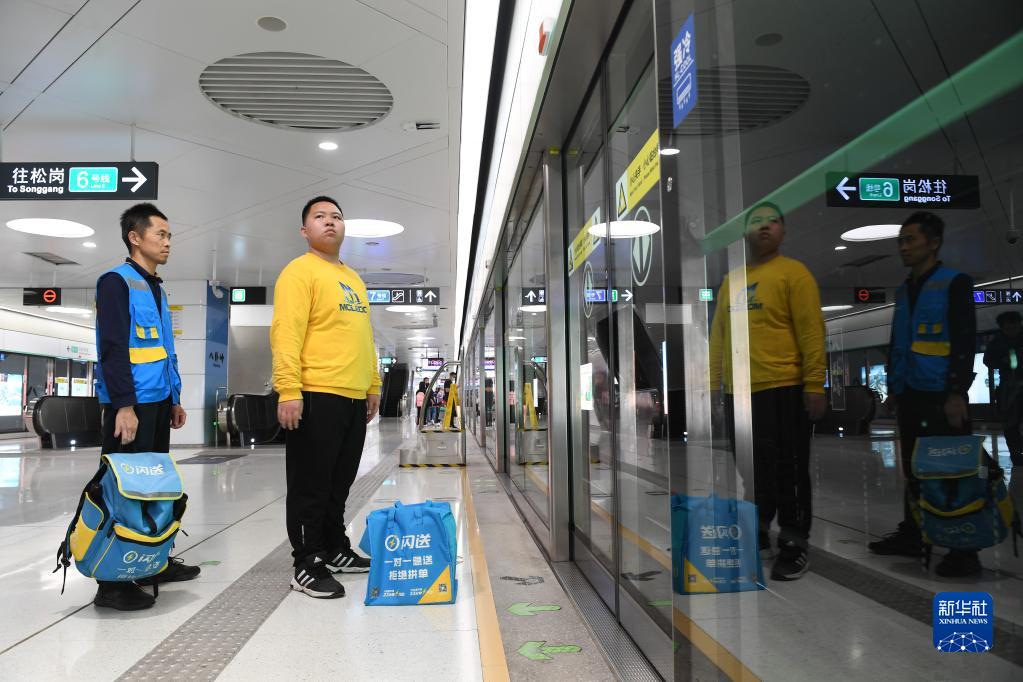 4月2日,黃志能(右)和爸爸黃少禮在地鐵站站臺(tái)等車。
