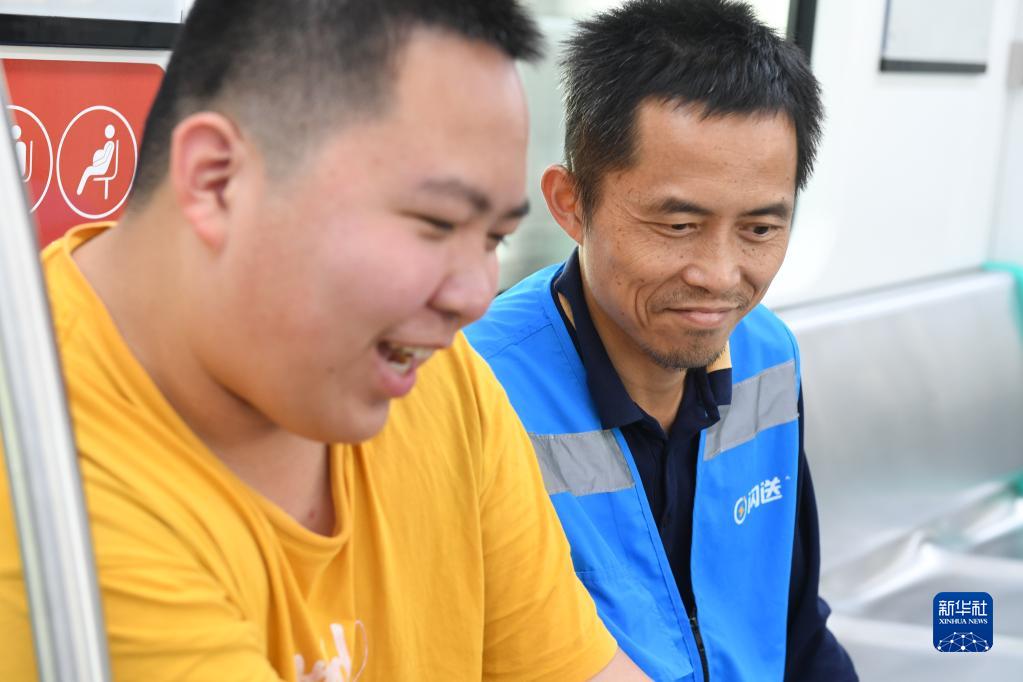 黃志能2歲時確診孤獨癥,出于讓他多接觸外面世界的想法,黃少禮跑單送貨時都會帶著他。父子倆每日背著包穿梭在城市的大街小巷里,搶單、送貨。黃志能方向感很強,找路、換車十分熟悉,比父親還快。“他腦子里有個地圖,去哪里都找得到。”黃少禮說,“送單時,他情緒很好,跟客人都能正常溝通。我希望每天能多接單,讓他的情緒保持平穩,將來能夠獨立生活”。