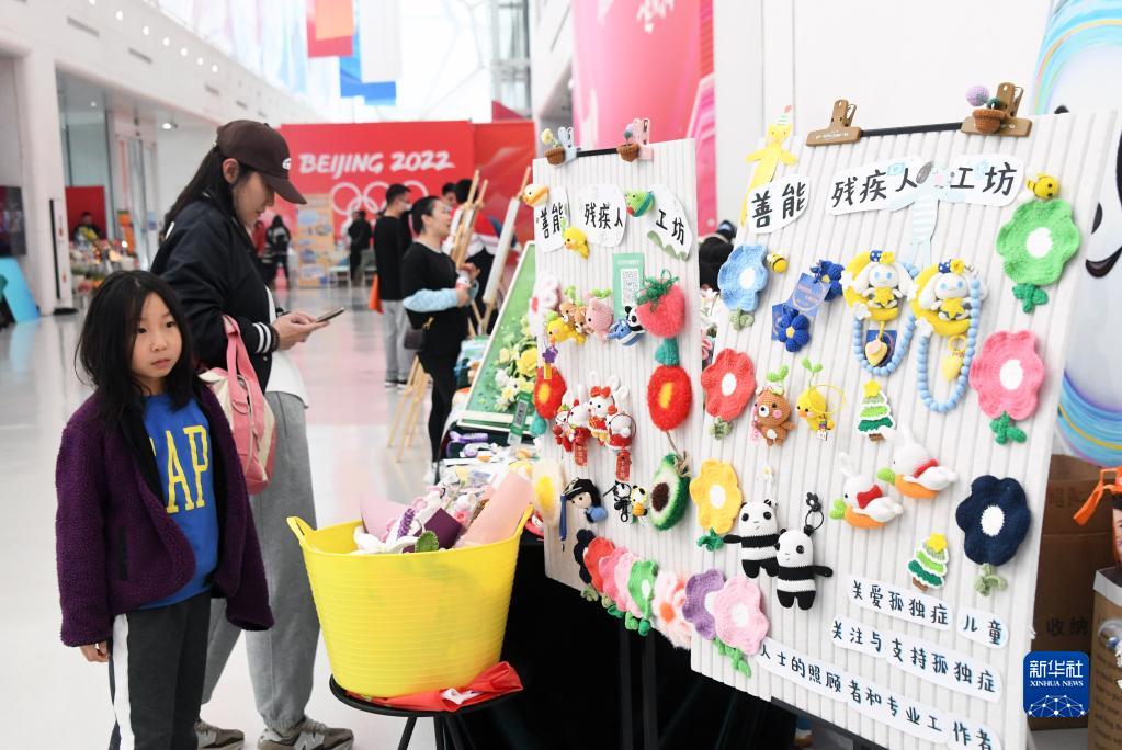 4月2日在國家游泳中心“水立方”拍攝的愛心市集。